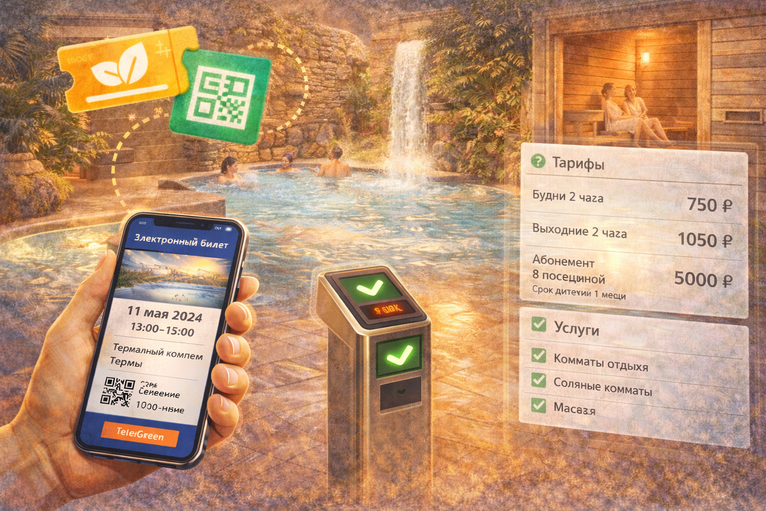TeleGreen — онлайн-продажа билетов в бани и термы с управлением загрузкой