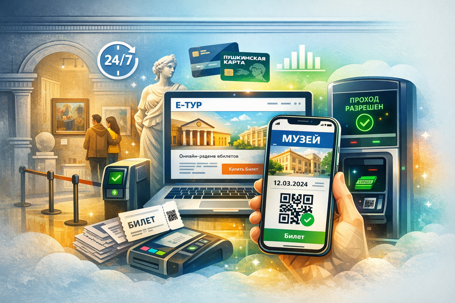 Сегодня посетитель ожидает: онлайн-покупку, электронный билет, быстрый вход без очередей. А руководству музея необходимы: прозрачность, контроль, точные отчёты и возможность увеличивать доход.